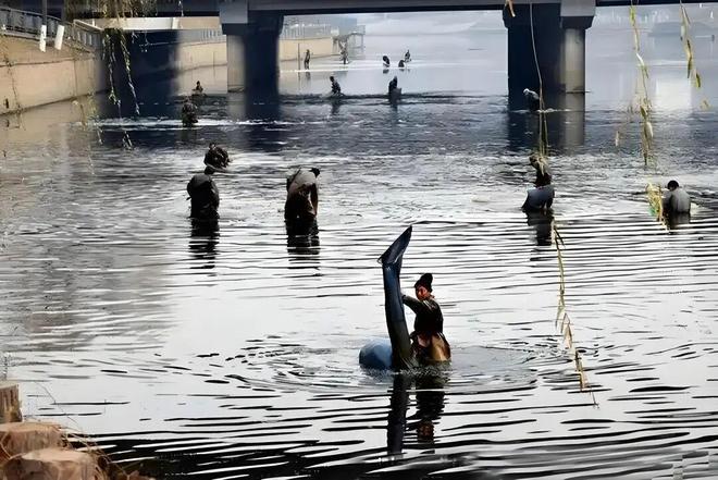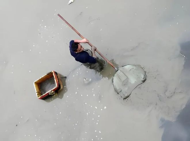 他们衣裳防水服,忍着臭水沟泄气的铩羽味,手里拿着抄网或者撒网,在水中往返穿梭,翻搅着淤泥,然后用网兜住这些搅拌的泥水,用来筛选红虫。