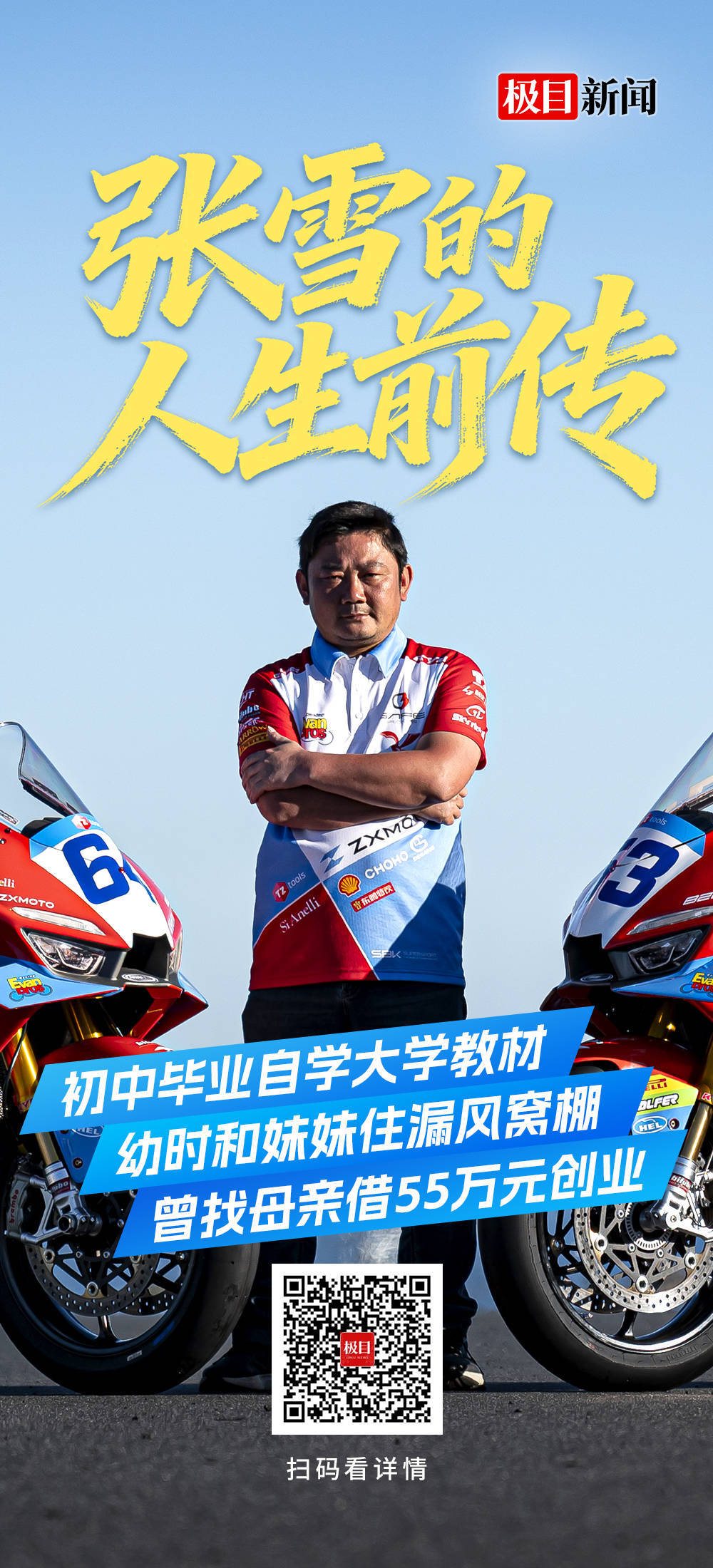 39年来,张雪有着旁东说念主难以企及的东说念主生体验:住四面漏风窝棚里的山村少年,十几岁学修车,追车百公里求记者采访,买配件拼装摩托出售,4年里和内助告贷过活,创办两个机车品牌,在WSBK赛场匡助中国摩托车初次登上世界之巅……