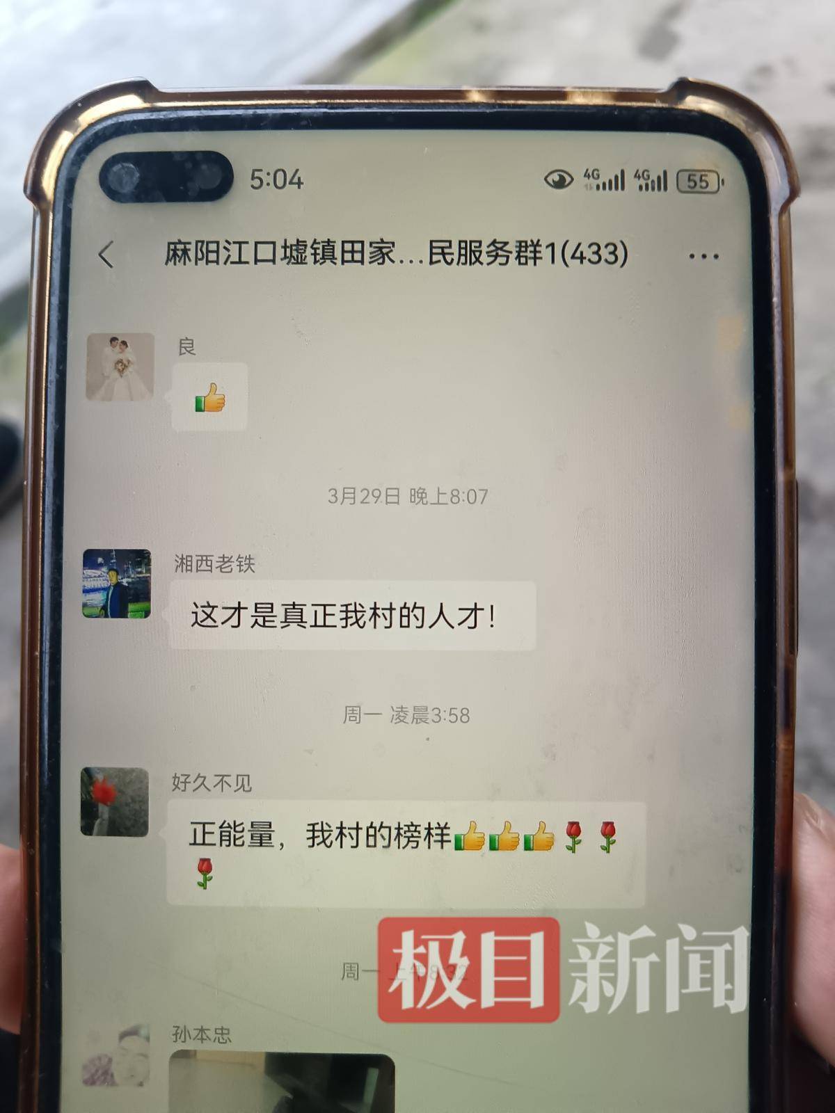 村民们在微信群为张雪点赞(记者肖名远摄)