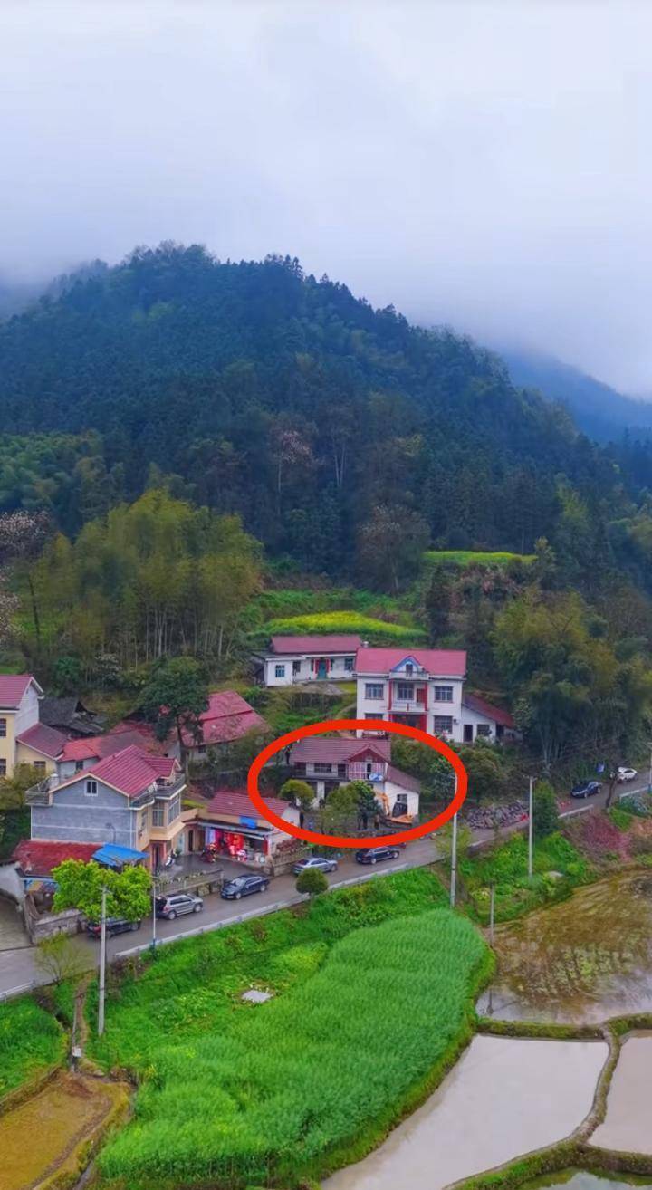 田家湾村,红圈为张雪家(视频截图)