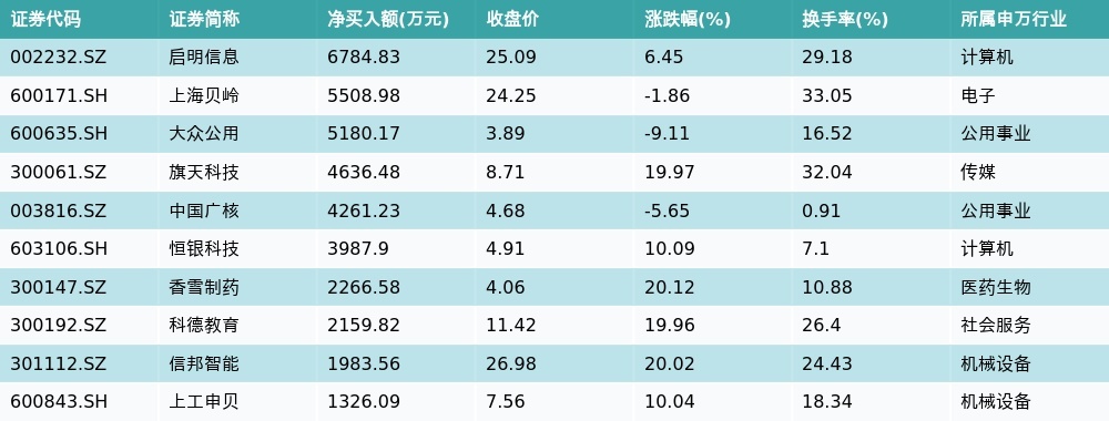7月31日龙虎榜交易部净买入额前10笃定见下表: