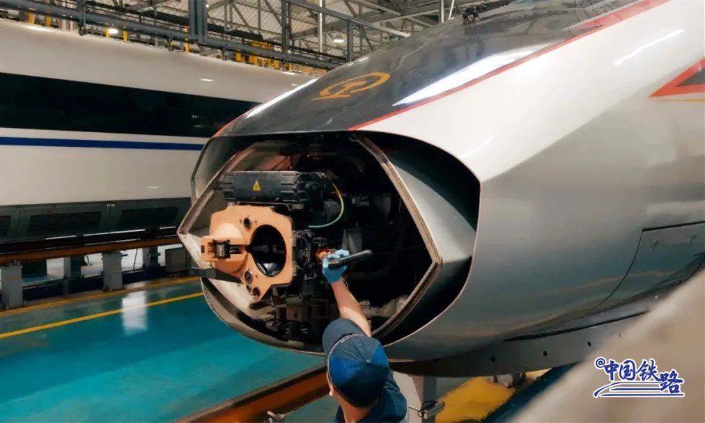 动车组重联一般在测验库内进行,以CR400BF型陈诉号动车组为例,在2名地勤机械师与2名司机的联结下,当联挂准备就绪,动车组头罩处于翻开现象时,司契机以2公里时速驾驶,完成动车组“接吻”。